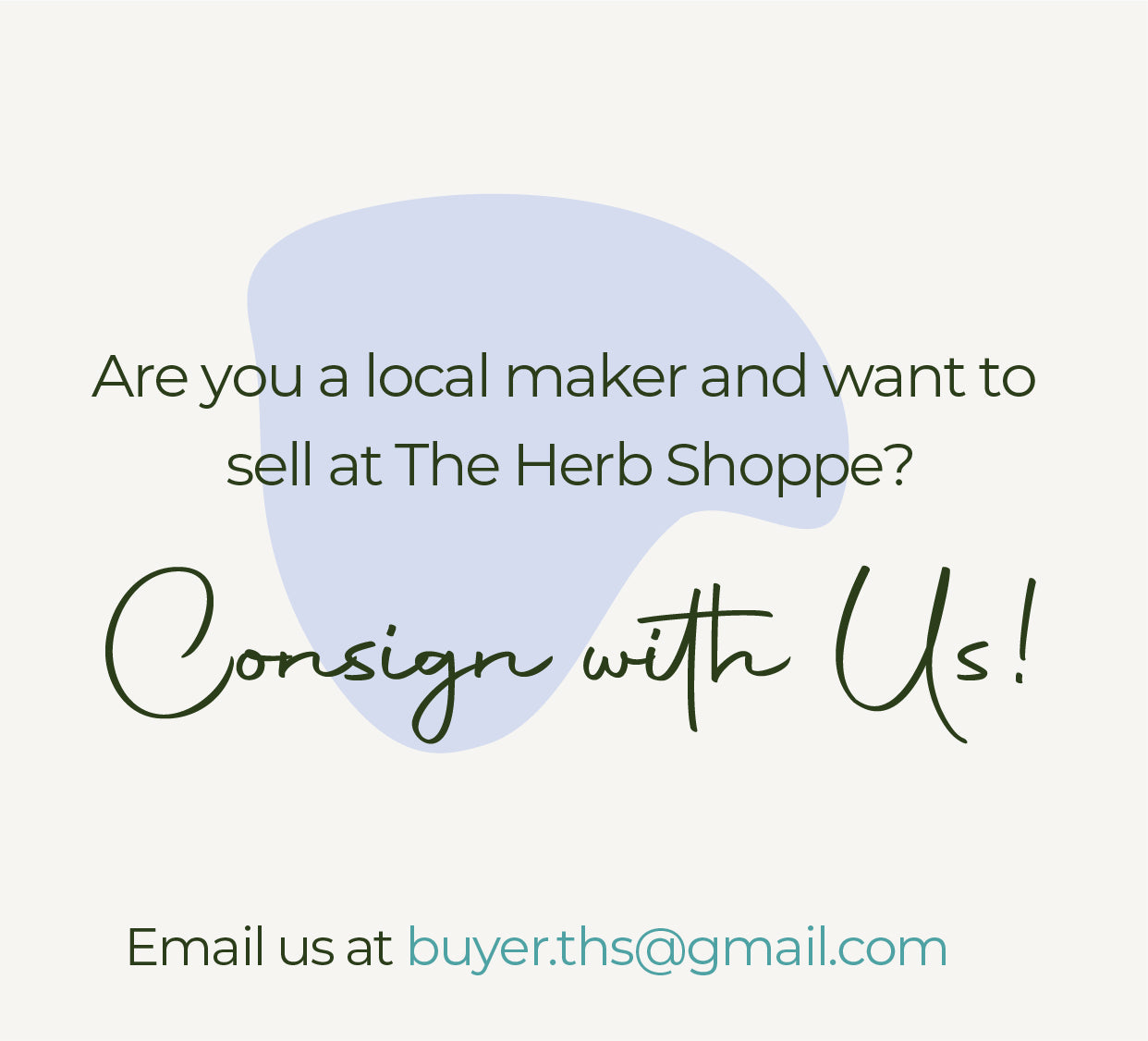 Sell at The Herb Shoppe! Email: buyer.ths@gmail.com